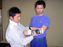 ●確認する場合は、痛がっているところを動かしてはならない。 ●骨折の症状 ・激しい痛みや腫れがあり、動かすことができない。 ・変形が認められる。骨が飛び出している。 ●骨折の疑いがあるときは、骨折しているものとして、手当する。